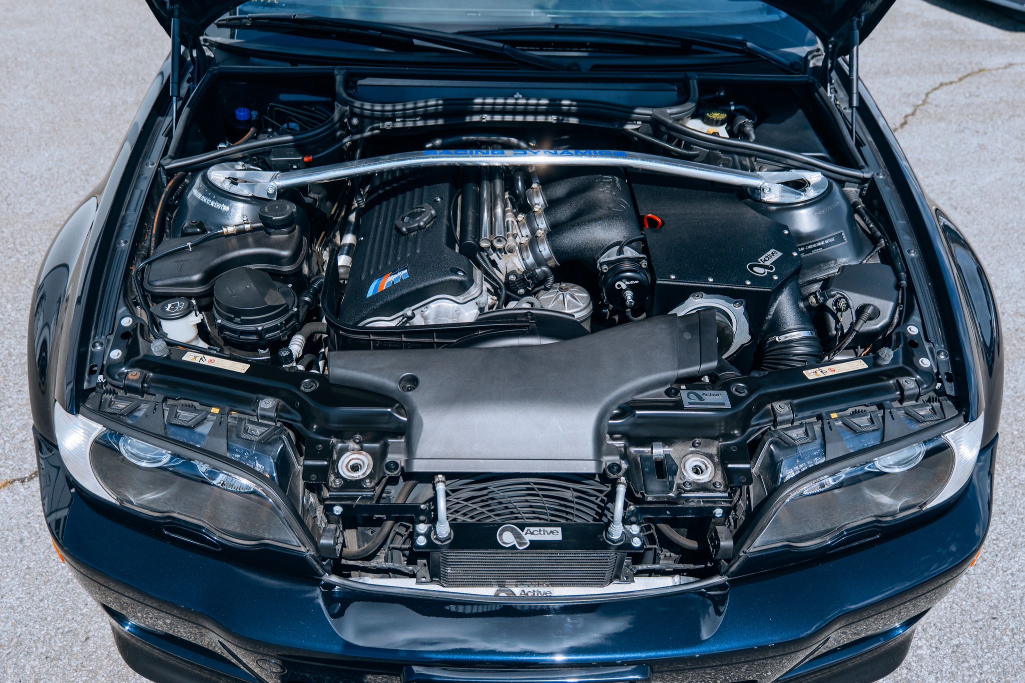 Tasteful, high-quality upgrades include an Active Autowerke Supercharger, Active Autowerke Exhaust, Racing Dynamics Strut Bar, RD Short Shift Kit, and H&R Wheel Spacers — enhancing both performance and driving dynamics while maintaining the car’s classic character.
